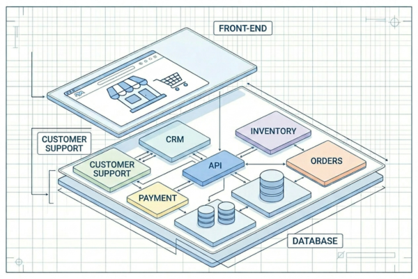 レコメンド、CRM、MA、在庫、基幹、決済、セキュリティ。いろいろな仕組みとつながる前提で考える必要があります。