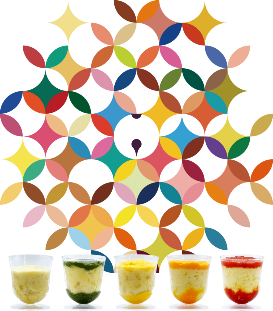 そこに伝統色をモチーフにしたソースを重ねることで、視覚的な美しさと味の変化を設計しました。