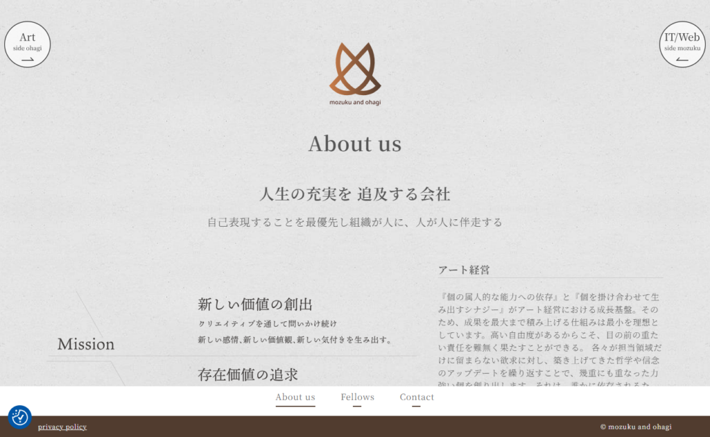 弊社のWeb サイトのキャプチャですが、ロゴのワンポイントやUIデザインの小さなあしらいに使うだけで、冷たいプロダクトに、体温のような温もりや品の良さを添えることができる。